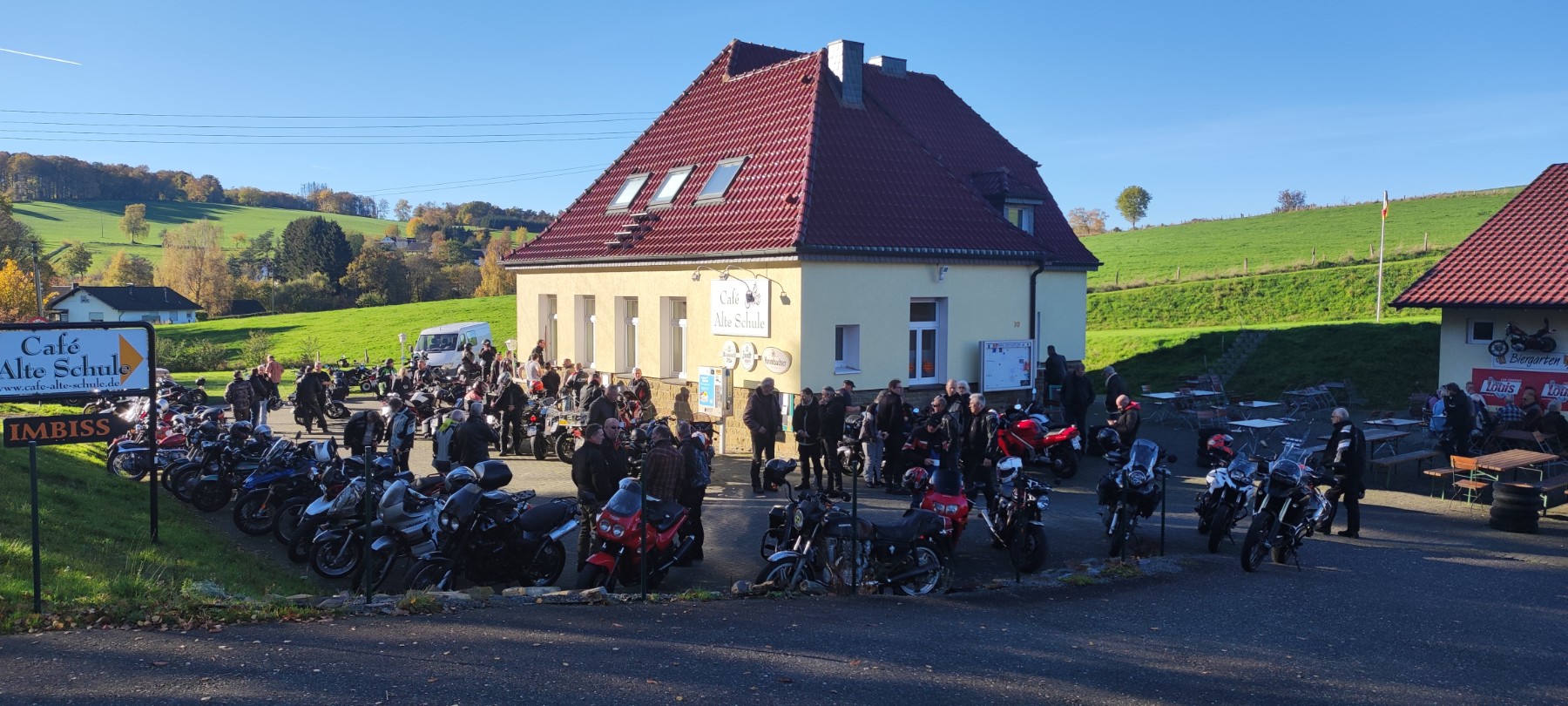 sammelt Betty und meine Wenigkeit kurz hinter Radevormwald =(Enzo´s Bikertreff an der Tankpool24) auf,