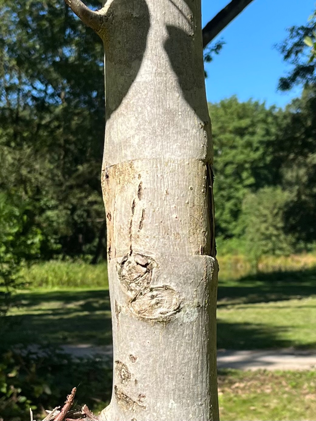 Die Grillhütte und der Walnußbaum befinden sich am Südufer des kleinen Teiches.