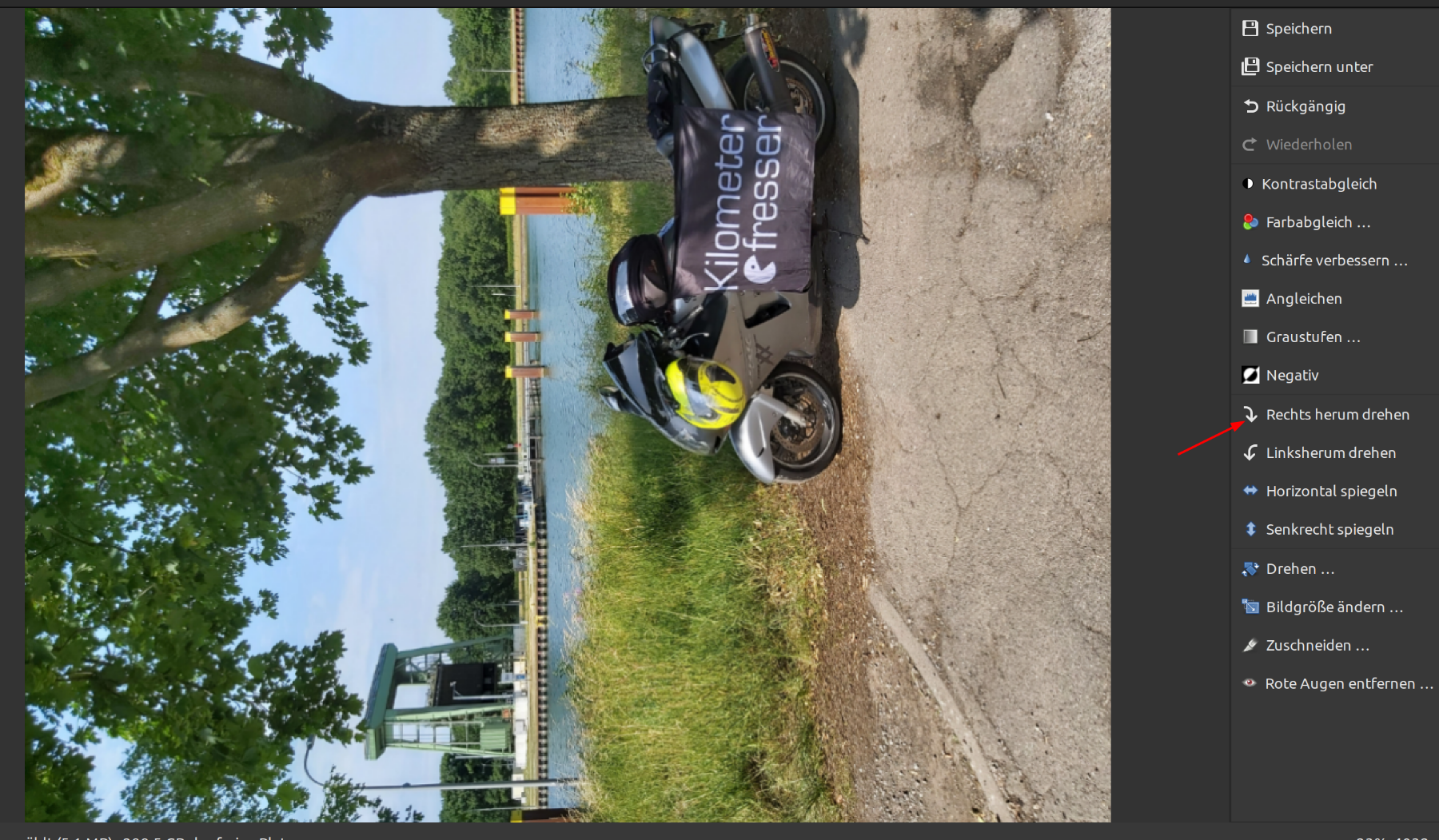 Bildbearbeitung öffnen, Bild laden und einmal links drehen und danach wieder rechts drehen Ergebnis: Bild unter neuem Dateinamen speichern.