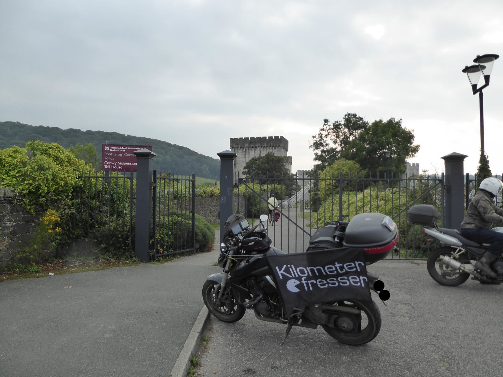 hier der Zugang zum 'Pont Grog Conwy Tolldy' (walisisch) / Conwy Suspension Bridge Toll House (englisch) / Hängebrückenmauthaus