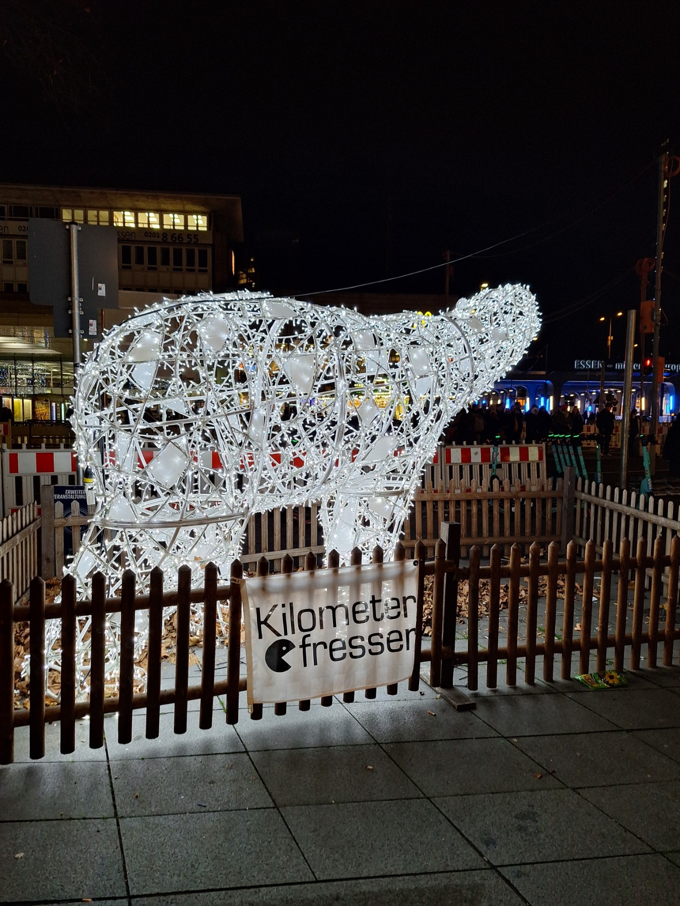 55. Beleuchtung Installation auf dem Weihnachtsmarkt in Essen vor dem Hauptbahnhof