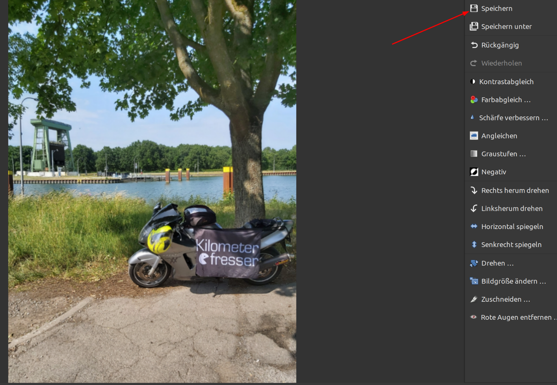 Bildbearbeitung öffnen, Bild laden und einmal links drehen und danach wieder rechts drehen Ergebnis: Bild unter neuem Dateinamen speichern.